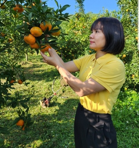 Hợp tác xã 3T Farm của chị Thủy là doanh nghiệp chuyên sản xuất, kinh doanh cây ăn quả có múi theo hướng hữu cơ. Ngoài cam tươi, Hợp tác xã còn có các sản phẩm chế biến từ cam, như: mứt cam, bột cam nguyên chất, trà hoa cúc, trà hoa đậu biếc… Chị Thủy đã hợp tác với Trường Đại học khoa học tự nhiên Hà Nội sử dụng chuỗi dây chuyền sơ chế sau thu hoạch, nhờ đó mở rộng quy mô sản xuất, tăng năng suất, tạo việc làm cho nhiều lao động địa phương. Khi tham gia Hợp tác xã 3T Fram, các thành viên Hợp tác xã đều có thu nhập ổn định, kinh tế gia đình đi lên. Anh Lương Văn Thảo, thành viên Hợp tác xã 3T Farm, cho biết: Hợp tác xã 3T Farm bao tiêu sản phẩm cho các hộ thành viên trong Hợp tác xã để đảm bảo ổn định giá đầu ra. Thứ hai là nguồn hỗ trợ Hợp tác xã, chúng tôi được tiếp cận hỗ trợ nguồn vốn về phân bón. Vì vậy, bà con giảm bớt khâu đầu tư đầu vào. Bình quân, 1 ha thu được 18 - 20 tấn cam. Chúng tôi bán cho Hợp tác xã 3T Farm giá 35.000 đồng/kg cam.